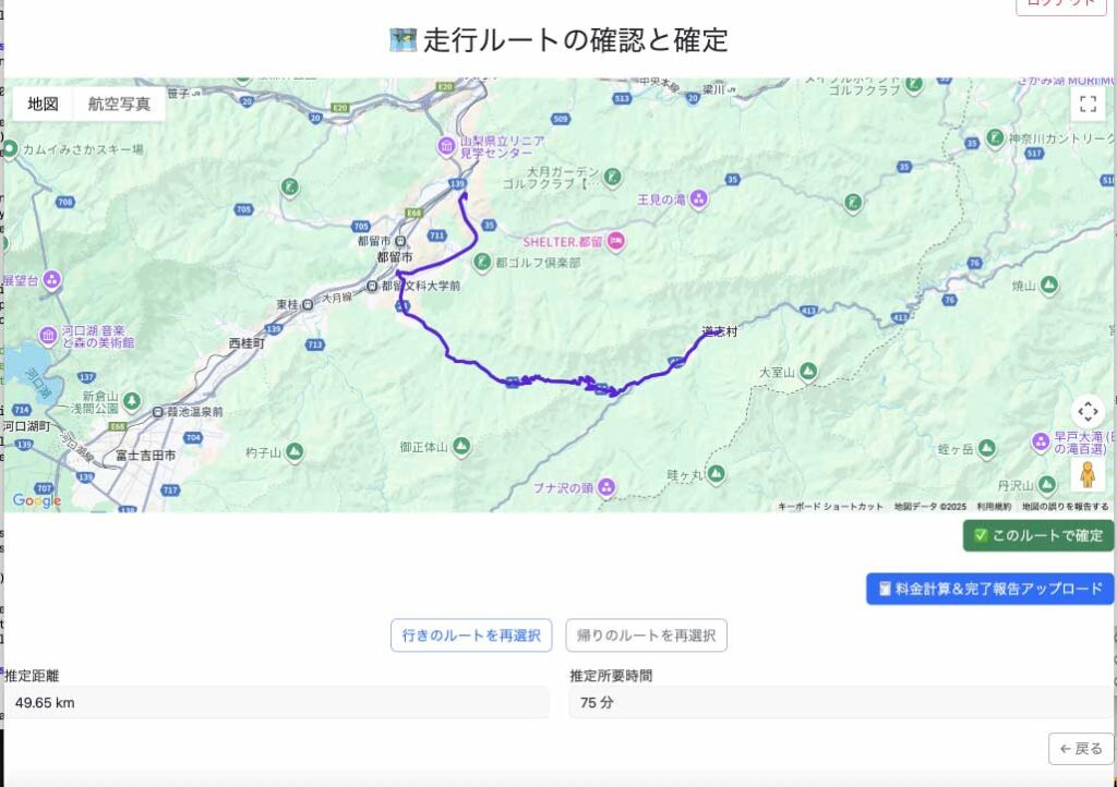 - GoogleMapを利用したドライバーの家から利用者(送迎を利用する人)の家から目的地、さらに帰りのドライバーの家までのルートを計算して、移動距離および移動時間を計算します。